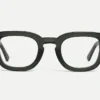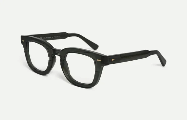 Instantly engaging and enduringly chic, Champ de Mars’ substantial frame is finished with subtle details that set it apart: beveled temples that catch the light, a front channel that lends sculptural depth, and AHLEM’s signature Bauhaus triangle in the corners. A narrower keyhole bridge offers an easy fit for a range of faces.