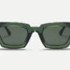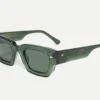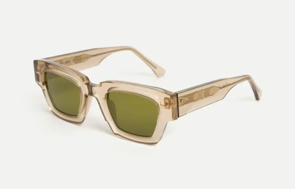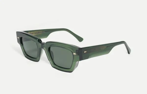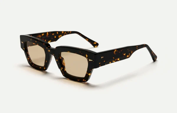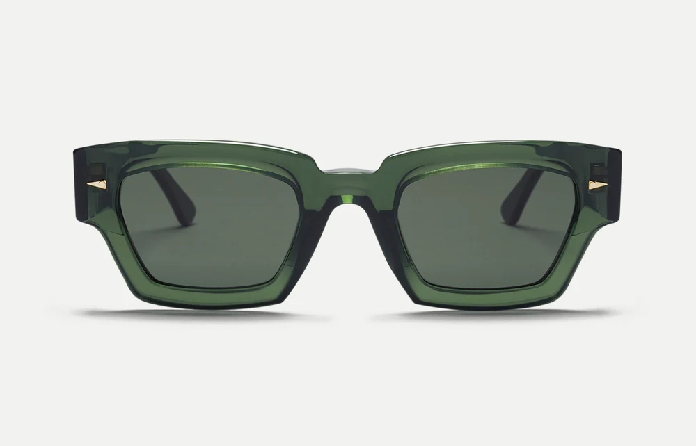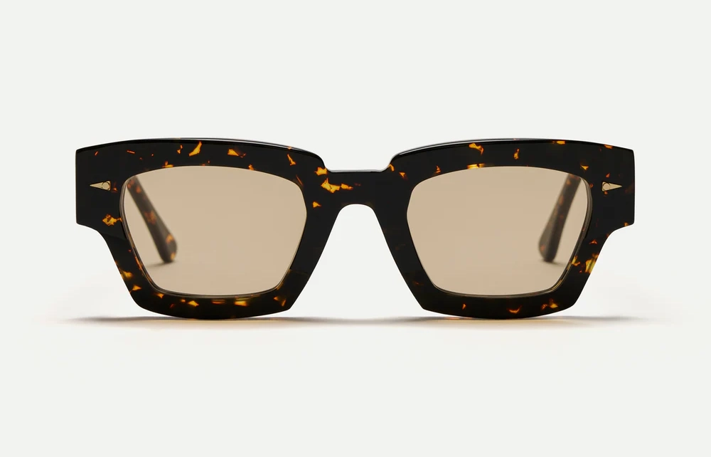 Named after the Paris park that houses Europe’s largest science museum, Villette is a tribute to the boxy rectangular 3-D glasses Ahlem wore there as a child. Strong angles and the intricate geometric filigree on the temple’s core wire, suggest transcendent innovation and futuristic transmissions.