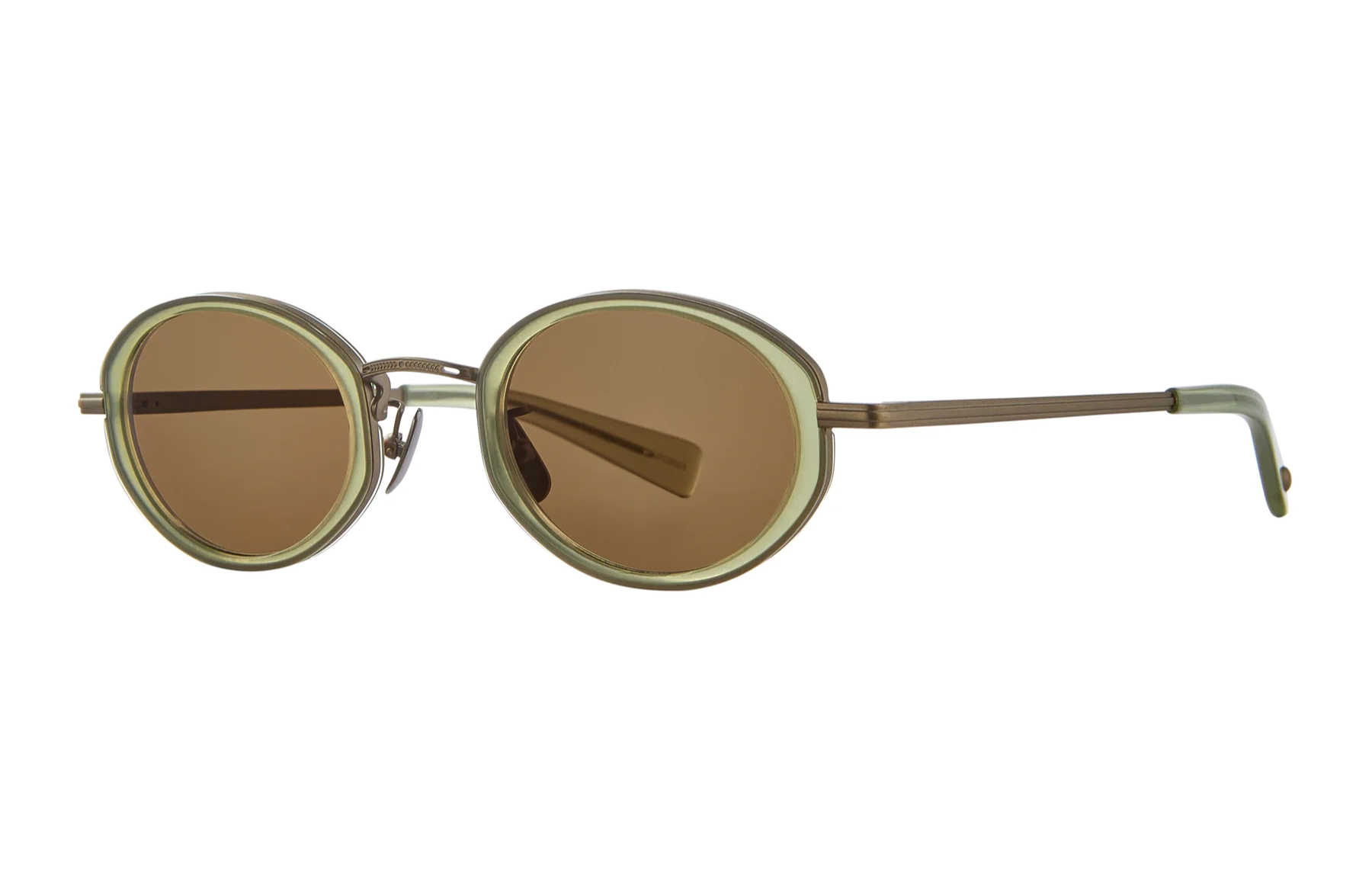 Alper Sun is a retro-inspired oval frame crafted in metal with an acetate insert for added structure and depth. The design is anchored by a Fern filigree bridge, grooved endpieces, and temples with integrated spring hinges for a flexible, secure fit. Adjustable nose pads provide comfort, while the lenses deliver 100% UV protection.