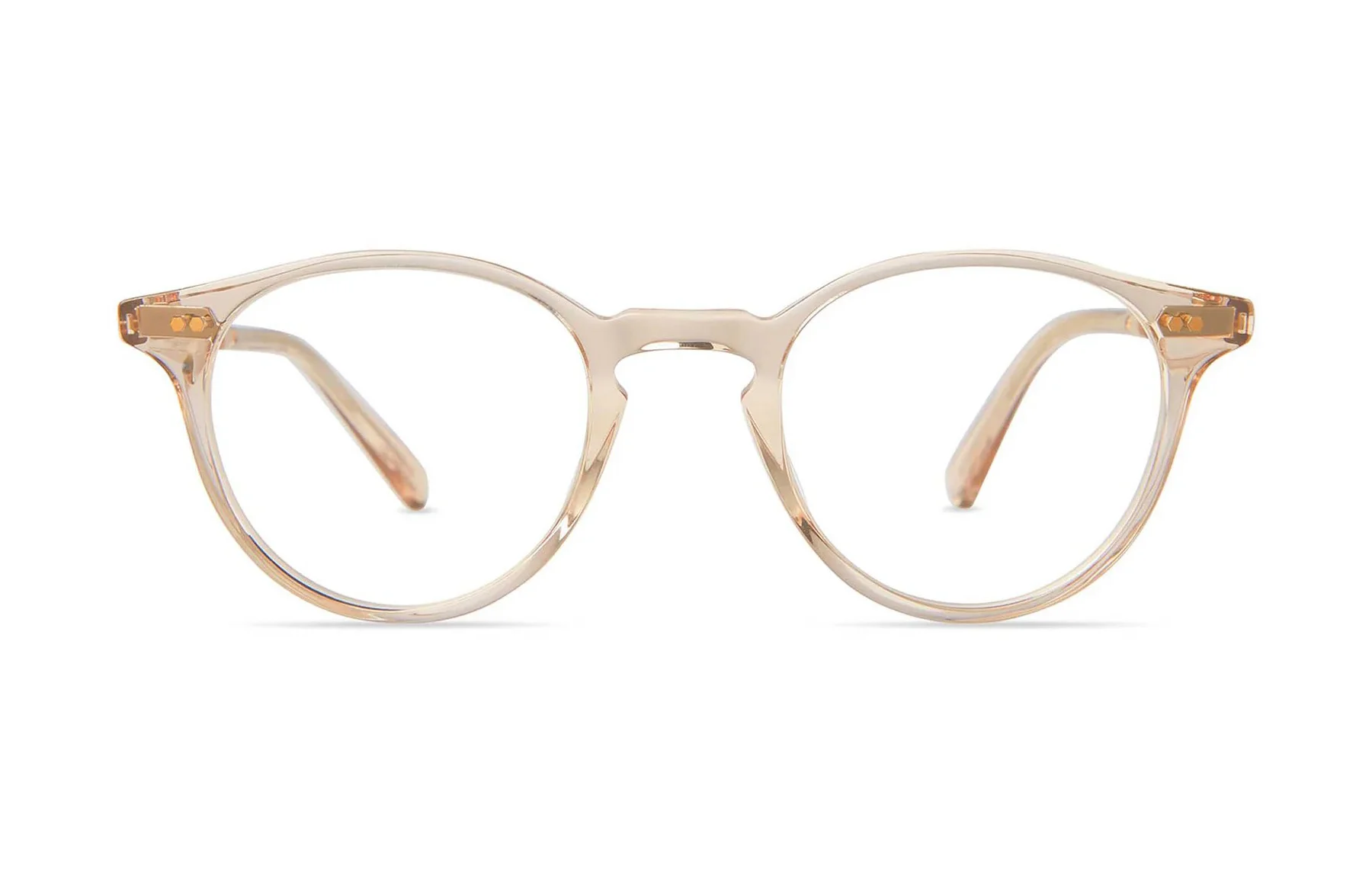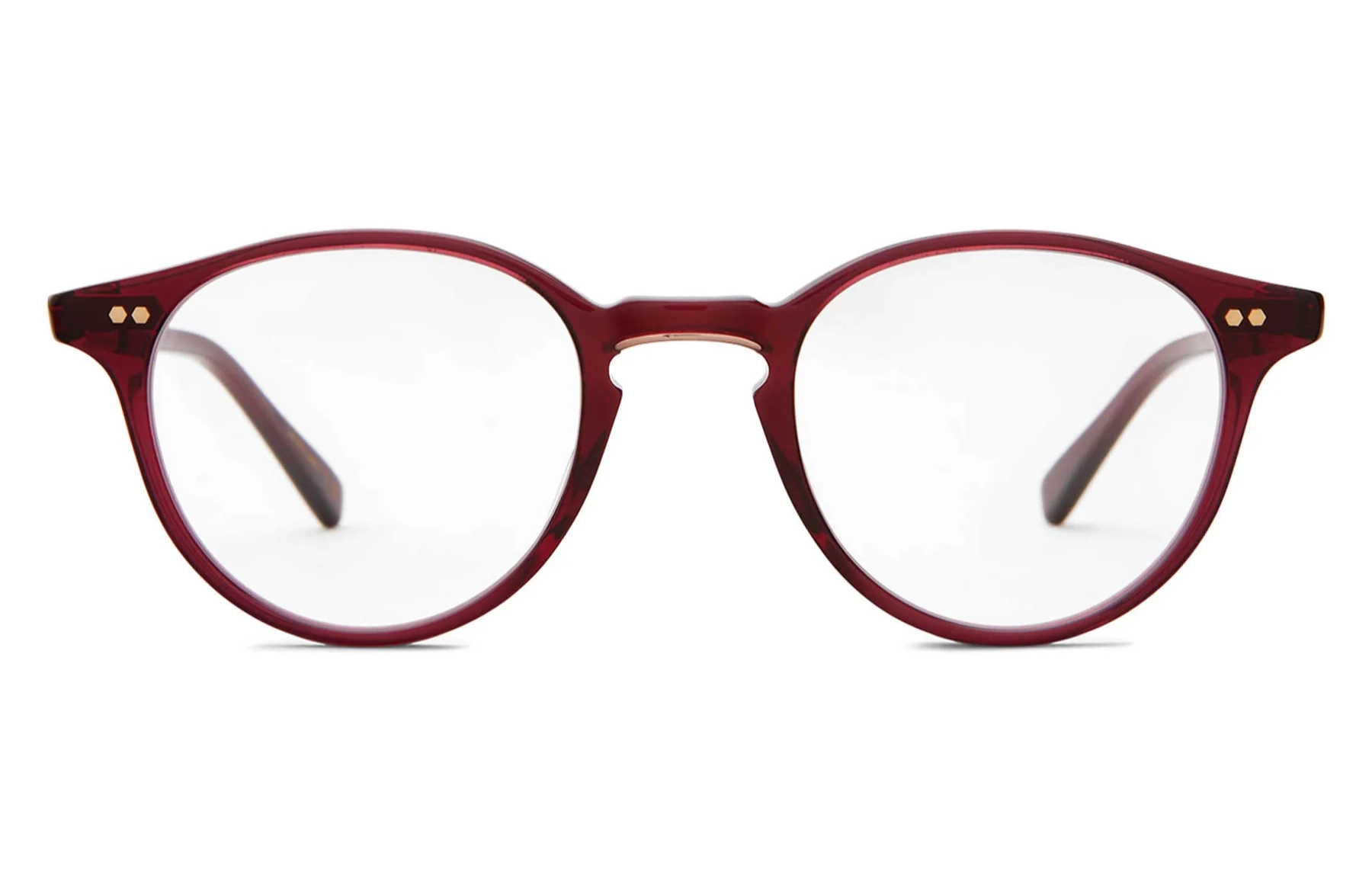 - Custom hexagon riveted pins at front and temples